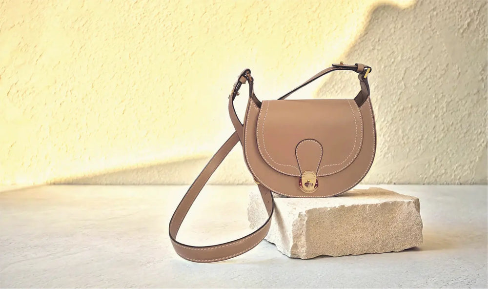 Page 40 of the H.J. Cave & Sons catalogue, dated May 1873, advertises "Cave & Sons' Leather Hand Bags" — structured bags with top handles, rigid frames, and double-action locks, in Black Enamelled Cowhide and Morocco leather. This is among the earliest known commercial uses of the term. The 72-page original survives in the company archive.